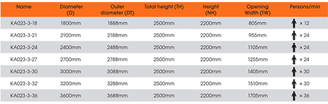 KA023 3 wings revolving door Dimension